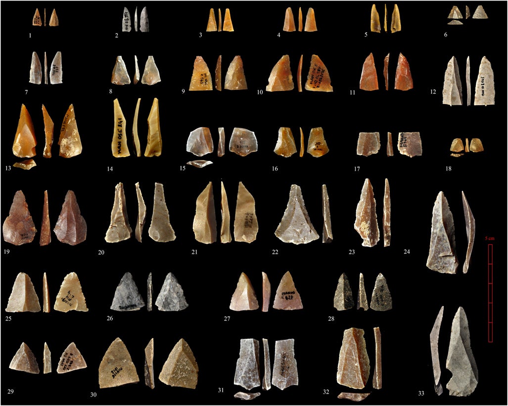 Testemunhos em pedra lascada encontrados da camada Mandrin E