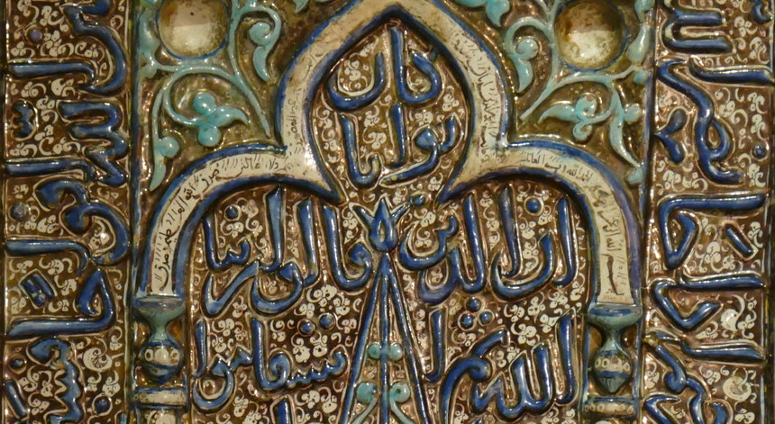 Este nicho de oração com mais de 700 anos revestia uma parede de um edifício religioso em Caxã, na Pérsia, cidade onde floresceu, na Idade Média, um importante centro de produção de azulejos e cerâmica.