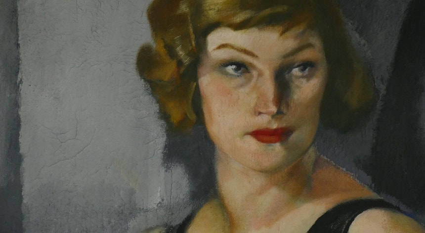 Este retrato de Natacha, bailarina russa, é justamente considerado a obra-prima de António Soares, pintor autodidata, que soube conjugar valores do modernismo e do academismo que se confrontavam no período de entre as duas guerras.