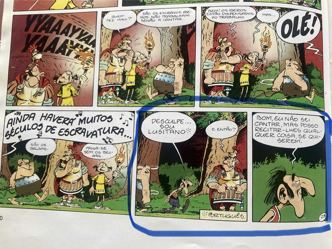 A editora espanhola Hachette Livre, citada no jornal espanhol El País, acrescenta que Portugal da época romana é o local escolhido para a dupla gaulesa onde, "em breve, encontraremos os nossos irredutíveis amigos gauleses no canto sudoeste do Império Romano, num país conhecido pela riqueza de monumentos, pelas especialidades culinárias e, acima de tudo, pela generosidade de seus habitantes".