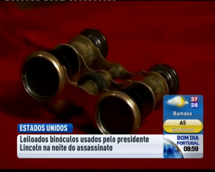 Vão ser leiloados nos Estados Unidos os binóculos que o Presidente Abraham Lincoln utilizou no teatro onde foi assassinado - Lincoln morreu a 14 de abril de 1865 durante um espetáculo de ópera no Teatro Ford.