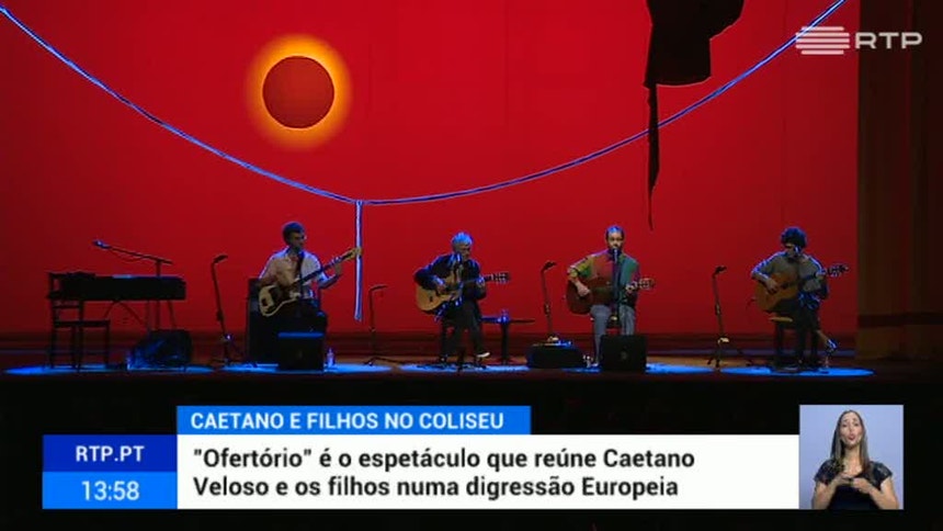 Caetano Veloso tocou segunda-feira no Coliseu do Porto, acompanhado pelos três filhos. O espetáculo "Ofertório" reúne canções do músico brasileiro e temas inéditos de Tom, Zeca e Moreno.