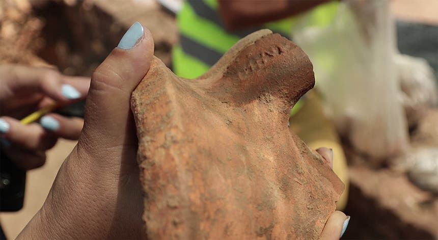 “Temos cerâmicas terra sigillatas hispânicas (cerâmica de mesa como pratos ou terrinas produzidas em território espanhol) e maioritariamente, temos sigillatas sudgálicas (cerâmica de mesa proveniente do sul de França) – que nos indicam séc. III d.C.”, explica a investigadora.