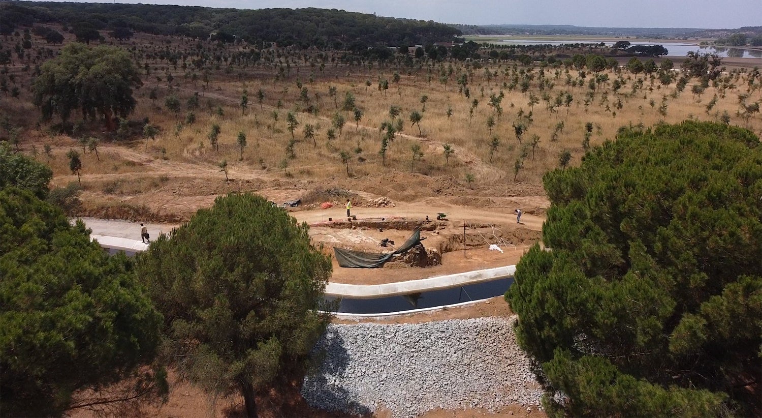 Local da escavação enquadrado entre o canal de rega e a paisagem de Alcácer do Sal | Raul Losada - Portugal Romano