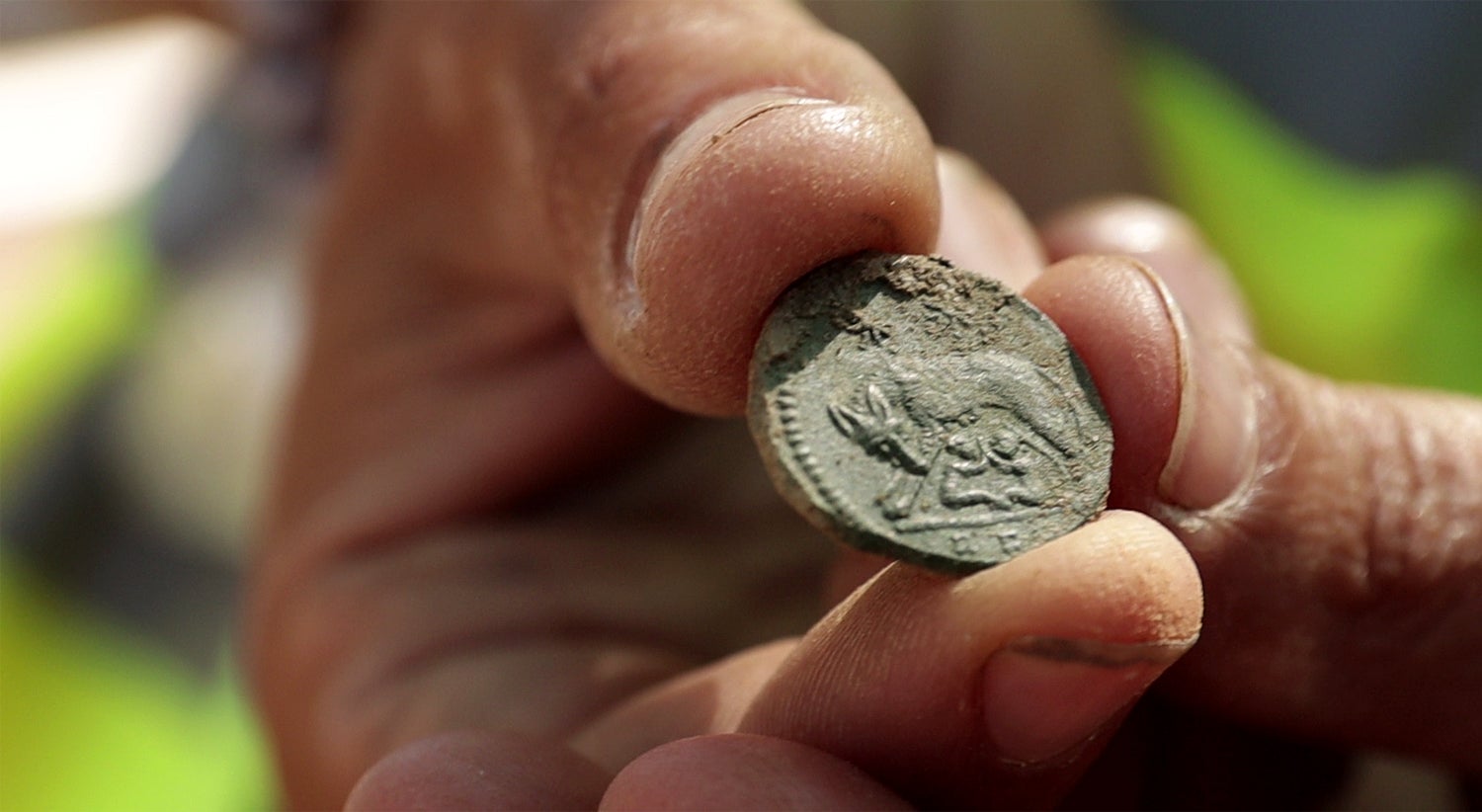 Entre os diversos materiais arqueológicos que ajudam a datar as estruturas está uma “moeda que parece ser do Imperador Constantino – é uma moeda de bronze – e parece ser uma moeda comemorativa com a loba capitolina (loba fundadora de Roma a dar de mamar a Rómulo e Rémulo) e depois diz Urbes Roma.