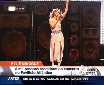 Kylie Minogue actuou ontem pela primeira vez em Portugal. No Pavilhão Atlântico, pouco mais de 5 mil fãs assistiram ao concerto da cantora australiana. A estreia de Kylie Minogue em Portugal foi um fracasso de bilheteira, apesar dos vinte anos de carreira e esta ser a primeira apresentação ao vivo em Portugal.