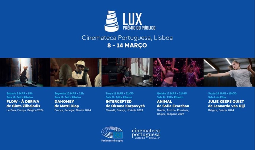 A Cinemateca Portuguesa, em Lisboa apresenta mostra de cinema com os cinco filmes nomeados para o Lux Prémio do Público 2025. ''Animal'', '' Dahomey'', ''Flow- À deriva'', ''Intercepted'' e ''O Silêncio de Julie'' são os filmes que concorrem ao prémio de cinema promovido pelo Parlamento Europeu que distingue um filme que segue os princípios da União Europeia. O filme é escolhido por votação on-line do público e dos eurodeputados.