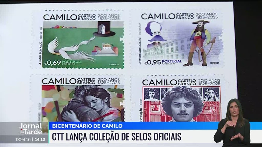 Começam a circular selos oficiais da República em memória de Camilo Castelo Branco.