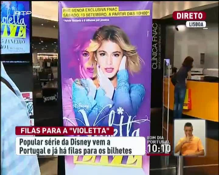 Já há filas para a compra de bilhetes para os espetáculos da "Violetta", uma das mais recentes personagens da Disney, que tem conquistado as adolescentes de todo o mundo. Os concertos em Lisboa estão marcados para Janeiro. O preço dos bilhetes varia entre os 35 e os 79 euros. Os passes VIP podem chegar aos 500 euros.