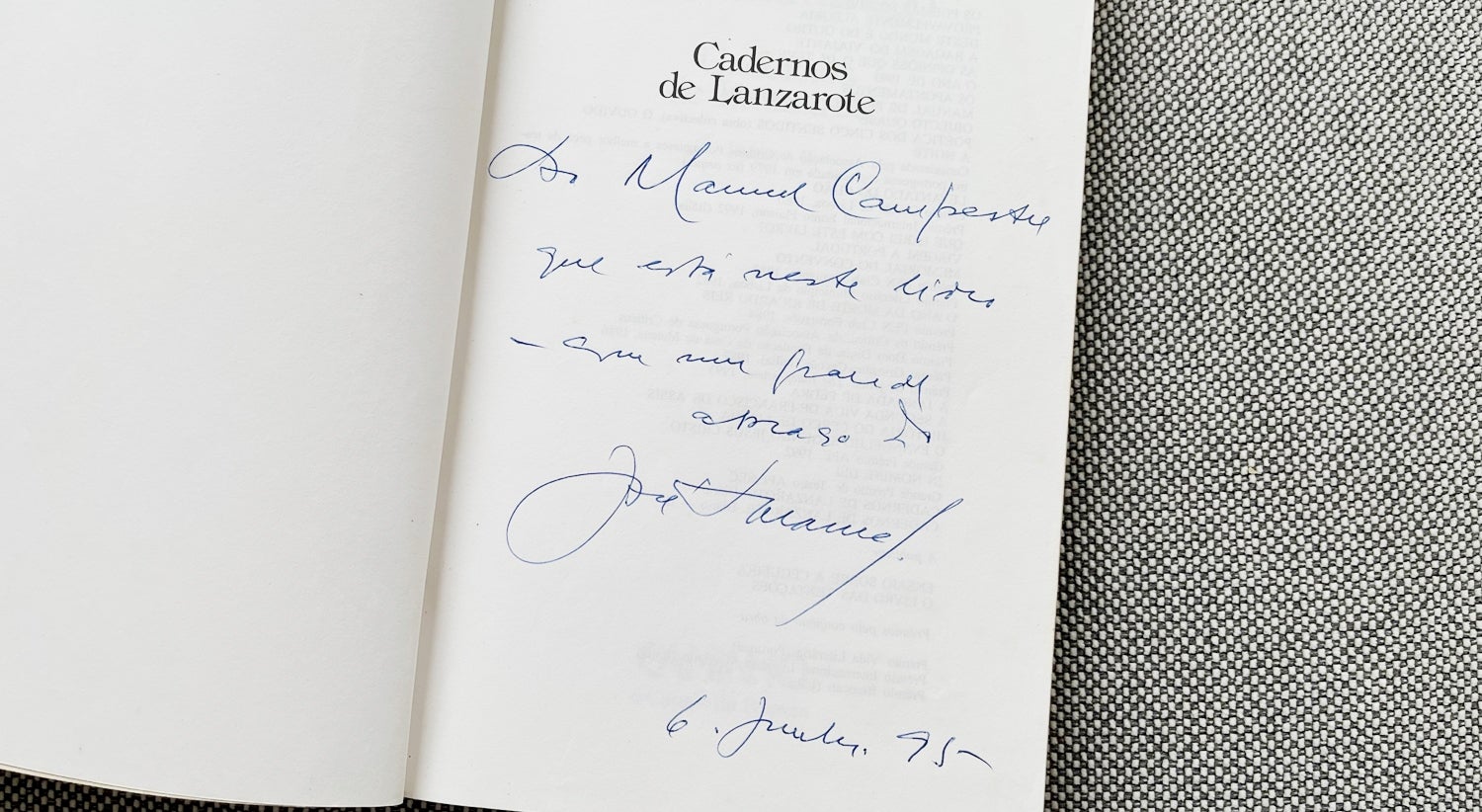 Quando chegaram à editora, José Saramago ofereceu a Manuel Campestre dois livros e autografou-os, a pedido do taxista. “E ele, por sua vez, não quis que eu lhe pagasse a corrida”, escreveu. Mais tarde voltariam a cruzar-se e mais livros o escritor ofereceria ao conterrâneo, sempre com dedicatória.