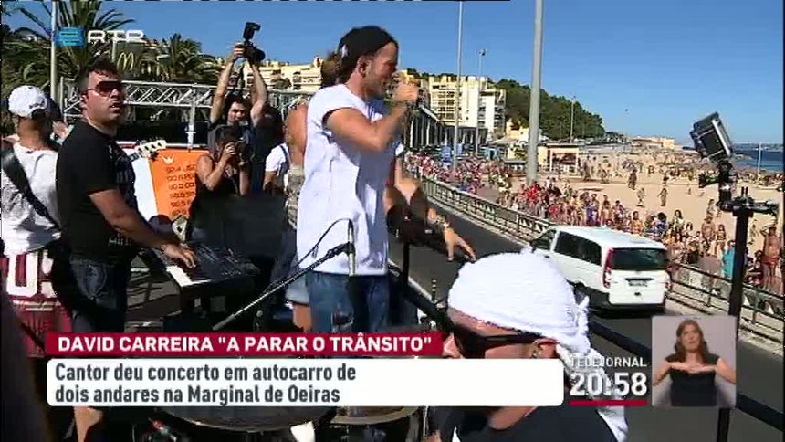 David Carreira fez parar a Marginal em Oeiras, com um concerto num autocarro de dois andares.