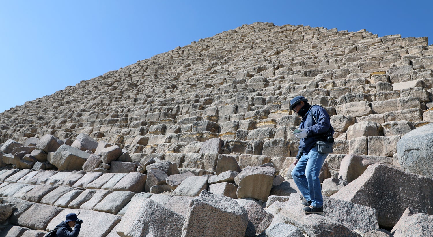 Arqueólogos japoneses verificam pedras na base da Pirâmide de Miquerinos | Khaled Elfiqi - EPA