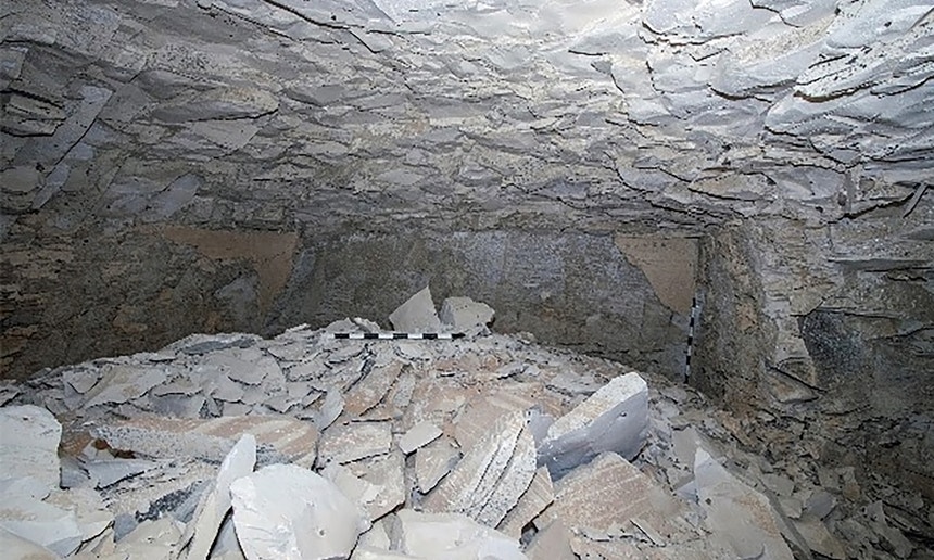 Depois de limparem os destroços na espectativa de encontrar um enterramento com “restos humanos esmagados”, o túmulo acabou por se revelar "completamente vazio". Perante a ausência de mais informações, os arqueólogos continuaram por confirmar a qual dos faraós pertenceria aquela câmara.