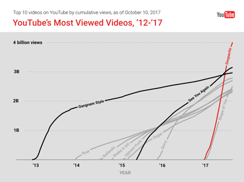 O vídeo musical "Despacito" foi o primeiro exito de uma série de músicas latinas, agora populares no YouTube, a quebrar recordes e a ultrapassar fronteiras.