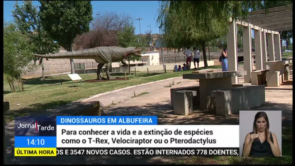 O parque do Ribeiro, à entrada da cidade de Albufeira, transformou-se no habitat de 14 dinossauros. São modelos do Dino Parque da Lourinhã, à escala real.