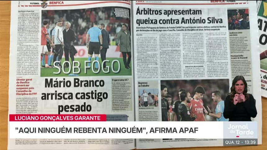 Mário Branco, diretor-geral do Benfica, pode ser suspenso entre 15 dias a seis meses por alegadas ameaças a Gustavo Correia. Na reação a este caso, o Presidente da Associação Portuguesa de Árbitros de Futebol garante que nenhum árbitro será despromovido por pressão dos clubes.