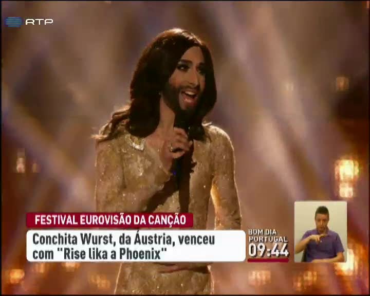 Conchita Wurst venceu o Festival da Eurovisão. A "mulher barbuda", como ficou conhecida, representou a Áustria com a canção "Rise like a Phoenix". Wurst é o alter ego de Thomas Neuwirth, de 26 anos, que já vinha sendo apontado como potencial vencedor nas duas semifinais.