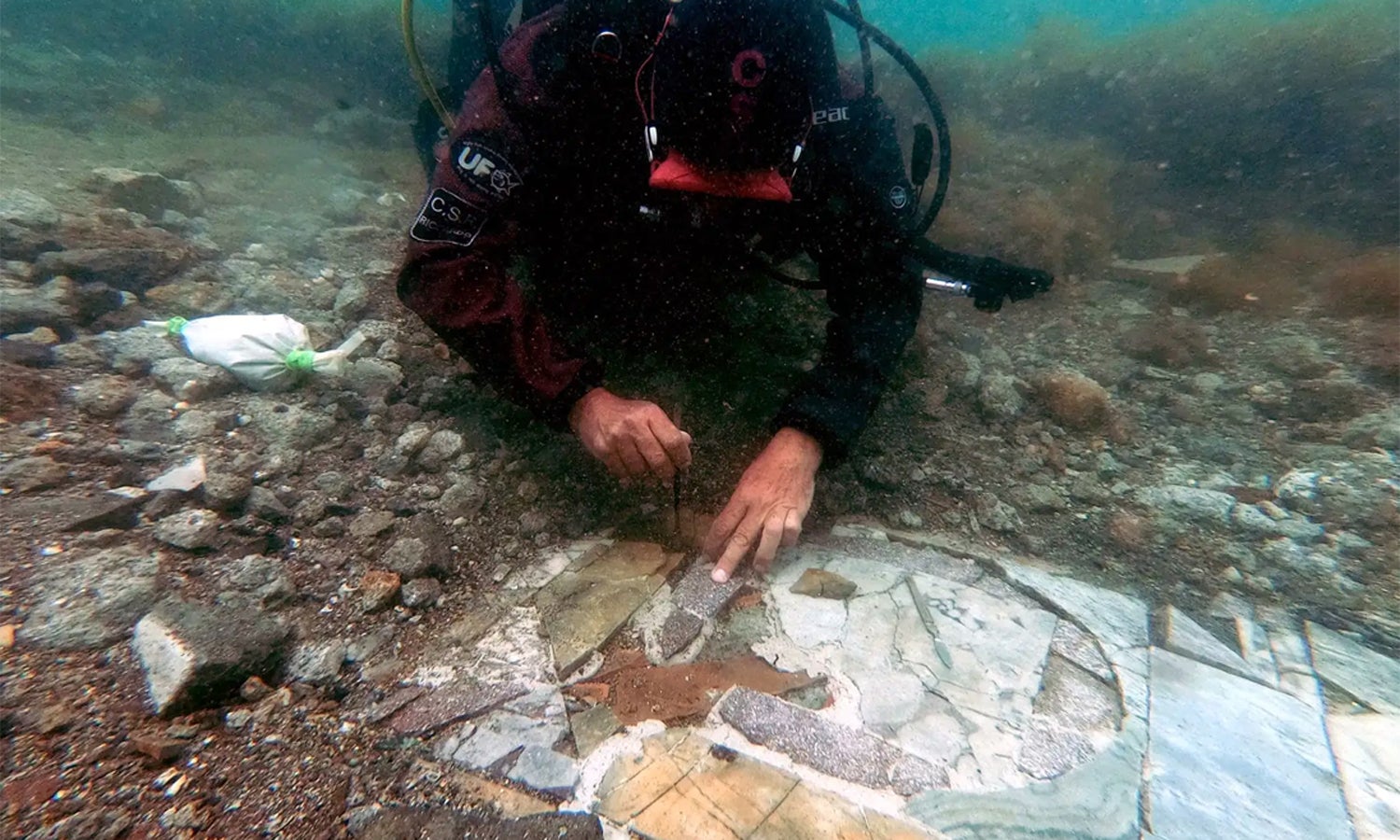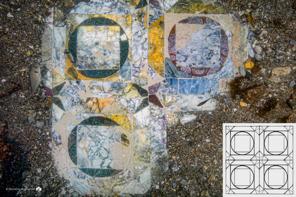 Época romana. Encontrado pavimento em mármore sob as águas da baía de Nápoles