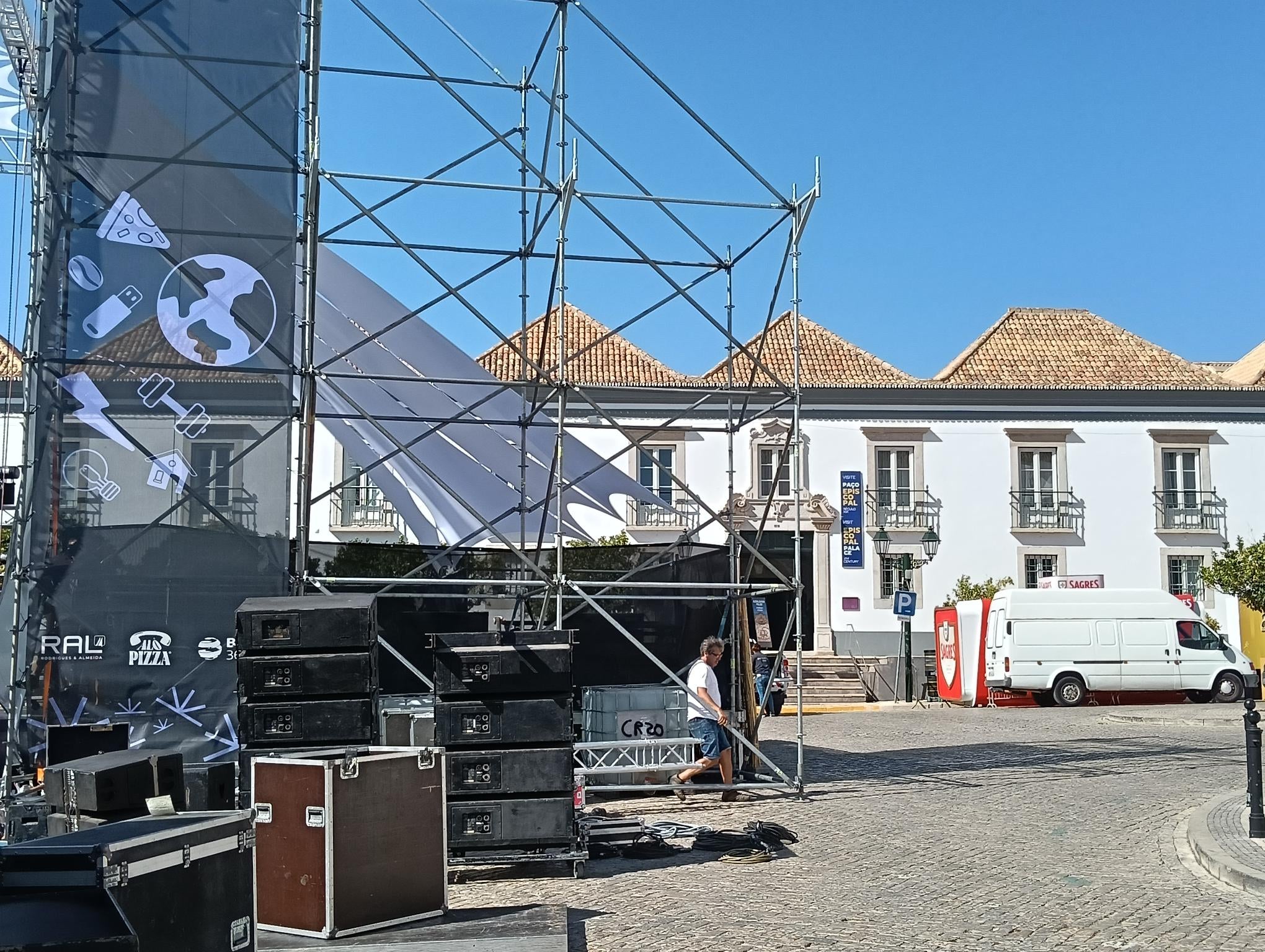 Palco Sé, em Faro, no momento da entrevista ainda a ser montado.