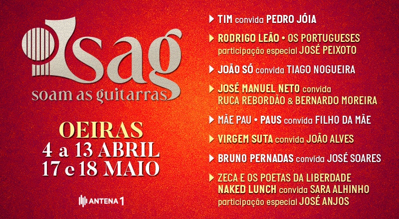 O 8.º festival Soam as Guitarras começa esta quinta-feira em Oeiras, passando em maio pela Póvoa de Varzim e Setúbal, com um cartaz que inclui espetáculos de Tim com Pedro Jóia e Rodrigo Leão com José Peixoto.