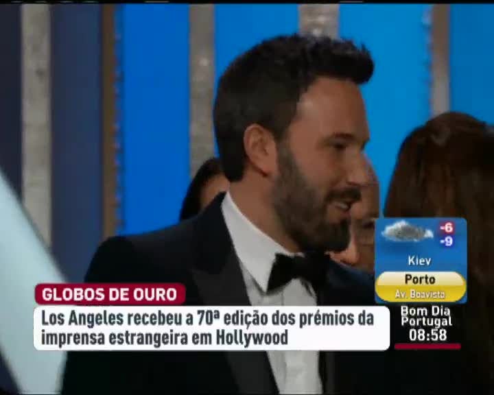 Foram atribuídos os globos de ouro deste ano. O globo para melhor filme foi para Argo. O melhor realizador foi Ben Affleck precisamente com o filme Argo. O prémio de melhor ator dramático foi para Daniel Day-Lewis pelo papel desempenhado em "Lincoln". Jessica Chastain recebeu o globo de ouro para melhor actriz dramática como protagonista de uma agente da CIA em "Zero Dark Thirty", o filme sobre a captura e morte de Osama bin Laden.