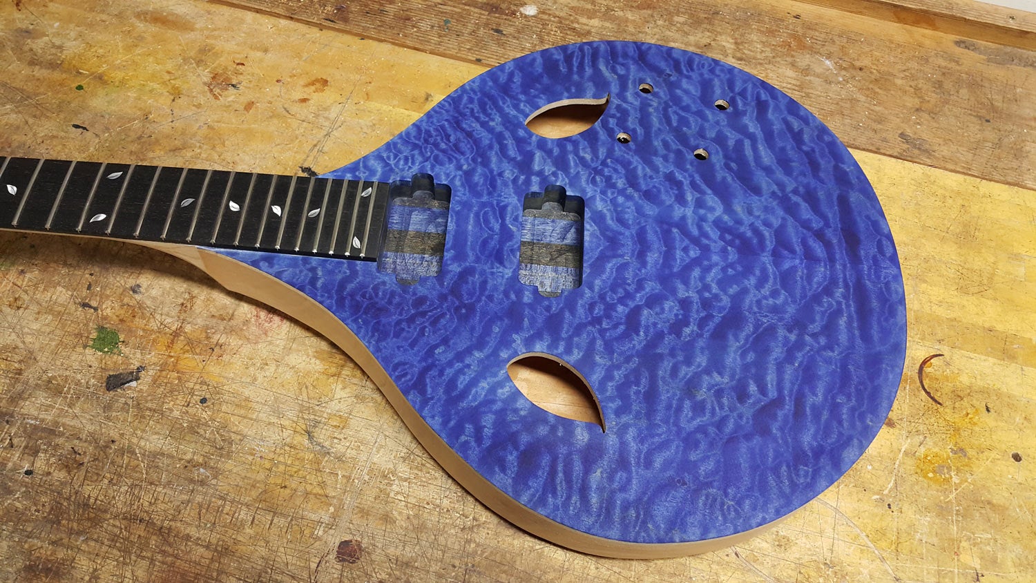 A caixa-de-ressonância do instrumento em forma de gota é inspirada na arquitetura interna da guitarra portuguesa, e a cor azul é uma alusão à azulejaria portuguesa.