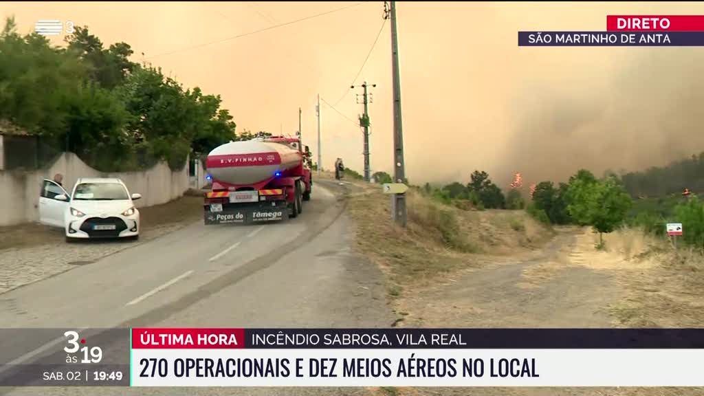 A linha de fogo estendeu-se, ao final da tarde, de Andrães até Sabrosa e São Martinho de Anta. Os dez meios aéreos mobilizados para o combate a este incêndio só poderão atuar até cerca das 20h30.