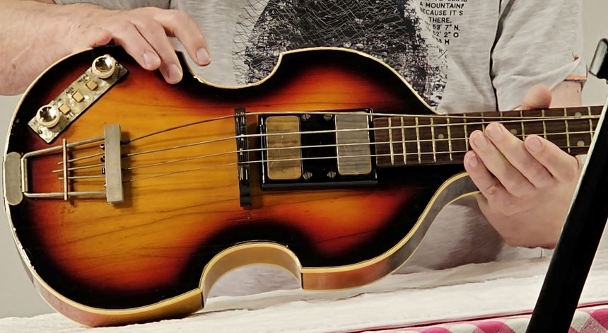 O baixo, comprado por Paul McCartney em Hamburgo, em 1961, foi utilizado nas gravações dos dois primeiros discos dos Beatles e em singles como 'Love Me Do' e 'She Loves You'.
