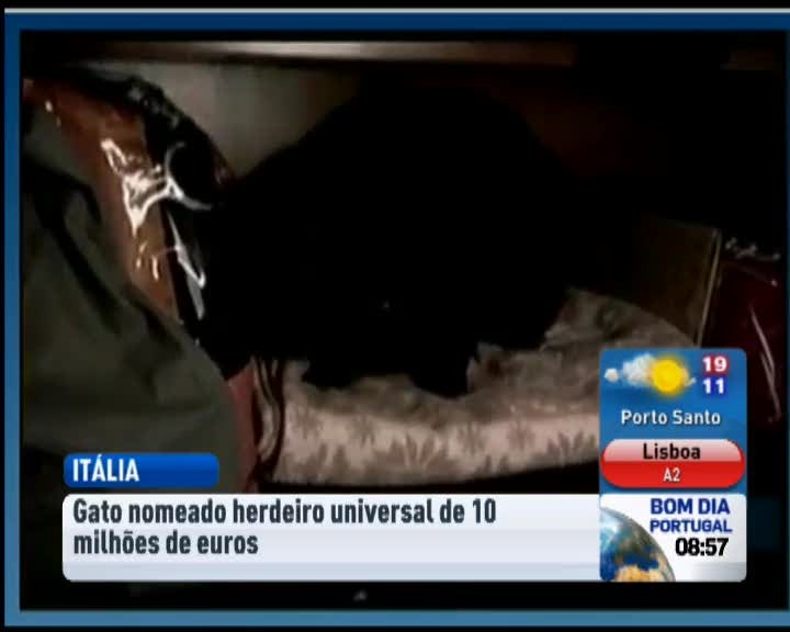 Uma milionária italiana deixou ao gato uma herança de dez milhões de euros, declarando o animal como herdeiro universal da fortuna. Mas o animal acabou por ficar sem direito ao dinheiro, já que a Justiça italiana não permite que sejam atribuídos heranças a animais.
