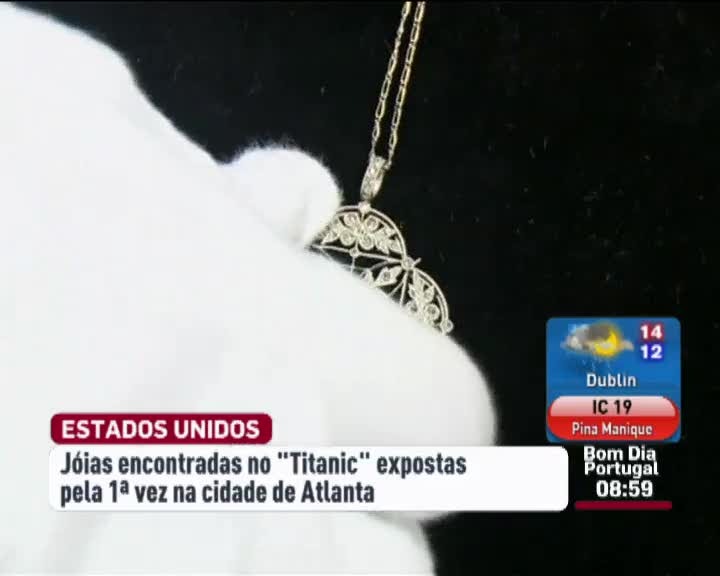 As joias encontradas no interior do paquete "Titanic" vão estar em exposição em Atlanta. É a primeira vez que vão ser mostradas ao público. A exposição inclui anéis de diamantes e safiras, pregadeiras, colares, botões de punho e um relógio de ouro. As peças foram recolhidas em 1987 durante uma expedição ao navio naufragado.