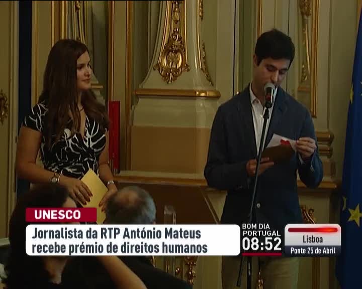 O jornalista da RTP António Mateus foi distinguido na edição do Prémio Direitos Humanos e Integração da Comissão Nacional da Unesco. Recebeu uma Menção Honrosa pela reportagem "Nelson Mandela "Os caminhos da Liberdade" exibida na RTP.