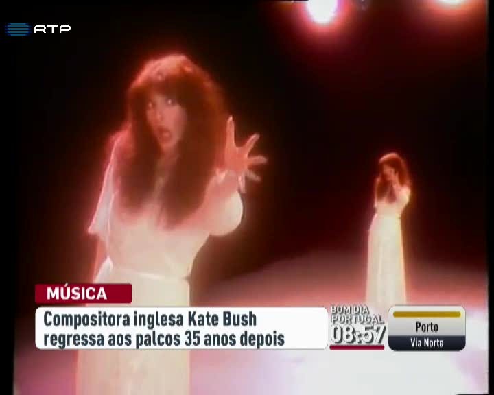 A compositora inglesa Kate Bush regressa hoje aos palcos no primeiro de 22 concertos agendados para uma das principais salas de espetáculos de Londres. Kate bush já não tocava ao vivo há 35 anos. Os bilhetes para os 22 concertos esgotaram há vários meses assim que foram colocados à venda.