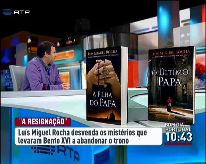 O autor do recordista de vendas "O Último Papa", ou de "Mentira Sagrada", que liderou as tabelas no Reino Unido, prepara-se para apresentar a próxima obra. Está para sair "A Resignação", livro em que o autor desvenda os mistérios que levaram Bento XVI a abandonar o trono de Pedro. Luís Miguel Rocha esteve na edição deste domingo do Bom Dia Portugal.