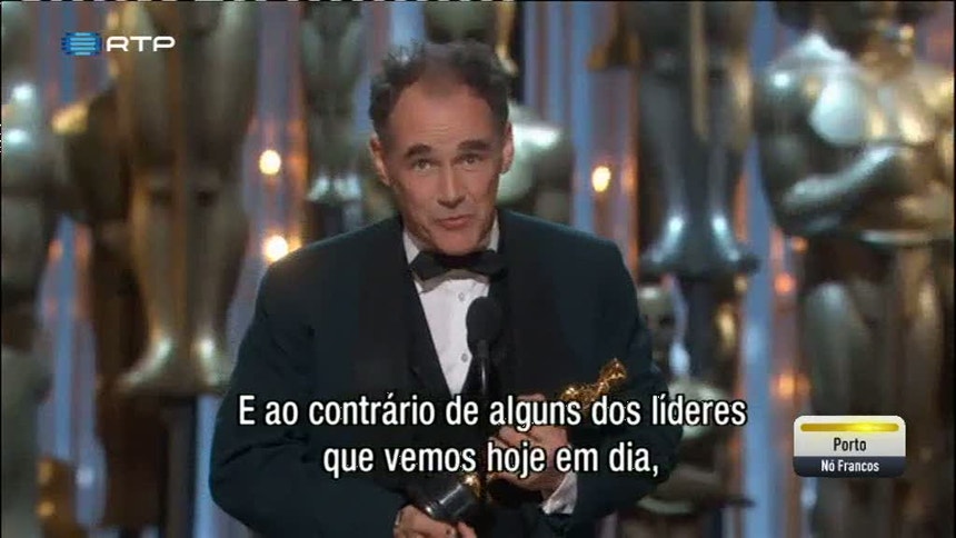 O prémio de melhor ator secundário foi para Mark Rylance. Diz que a história do filme que lhe valeu o Óscar, "A Ponte dos Espiões", é uma das melhores e que foi um honra trabalhar com o realizador Steven Spielberg.
