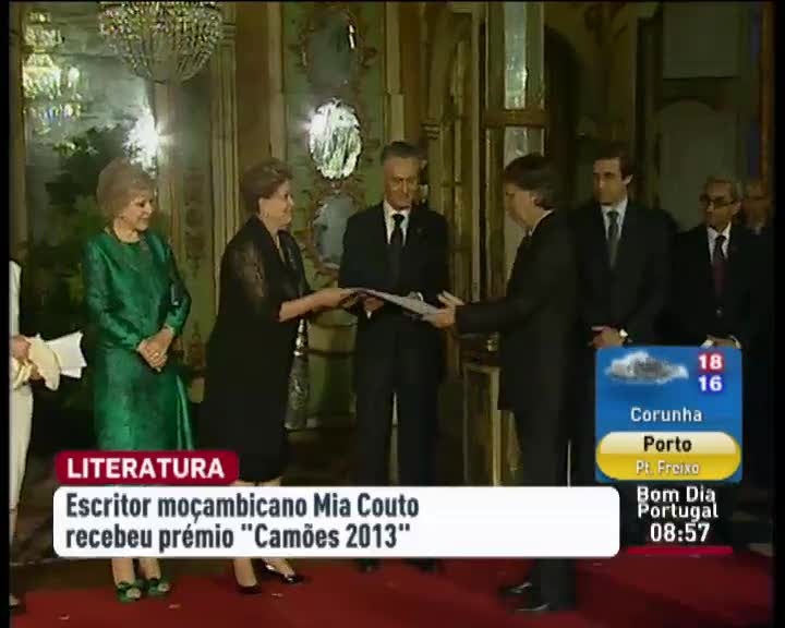 O escritor moçambicano Mia Couto recebeu o prémio Camões 2013. A cerimónia foi no Palácio de Queluz e contou com a presença de Cavaco Silva e da presidente do Brasil, Dilma Rousseff.