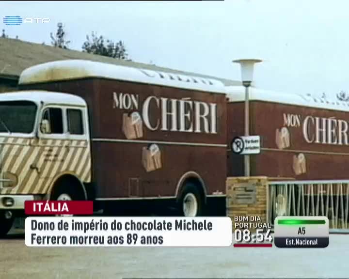 Morreu o dono do império do chocolate. Michele Ferrero tinha 89 anos e era o homem mais rico de Itália. Ferrero transformou uma pequena fábrica de chocolate de Piemonte num gigante de escala mundial. Era conhecido por gerir os negócios com braço de ferro. A fortuna de Ferrero está avaliada em mais de 20 mil milhões de euros.