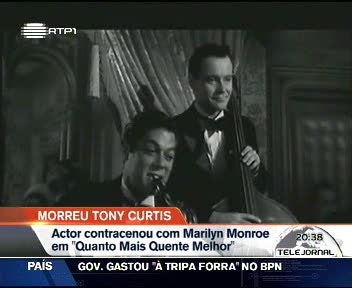 Morreu Tony Curtis. O actor americano de 85 anos teve uma longa carreira no cinema. Tony Curtis participou em filmes como "Quanto Mais Quente Melhor", de Billy Wilder, onde contracenou com Marilyn Monroe e Jack Lemmon, e chegou a ser nomeado para o Óscar de melhor actor pelo filme "Os audaciosos", de Stanley Kramer.