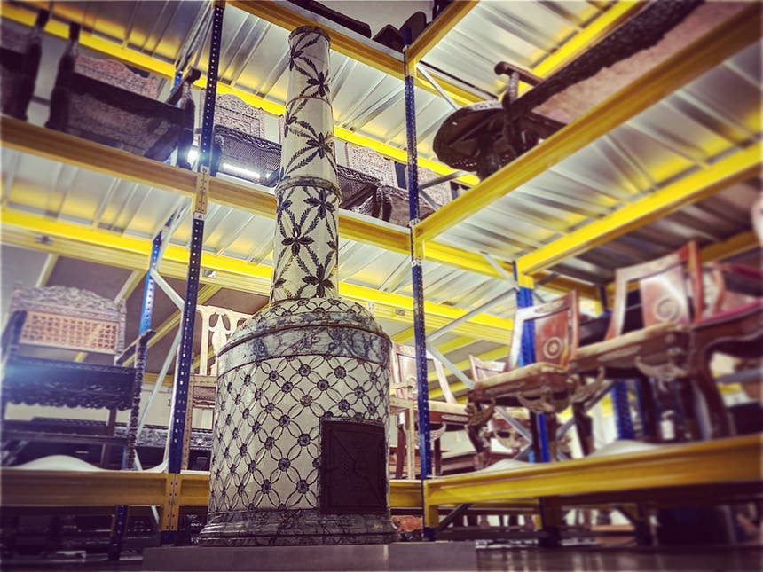 A visita faz-se numa área de aproximadamente 300 metros quadrados, onde se pode ver mais de 500 peças. No percurso definido, entre estantes repletas de história da cidade, os anfitriões terminam a visita com a Estufa. "É uma peça fabulosa. É um fogão de sala, a lenha para aquecimento doméstico, com assinatura da Real Fábrica de Louça do Rato", explica Aida. A Estufa foi produzida entre 1790-1795 de Faiança moldada, rodada e pintada.
