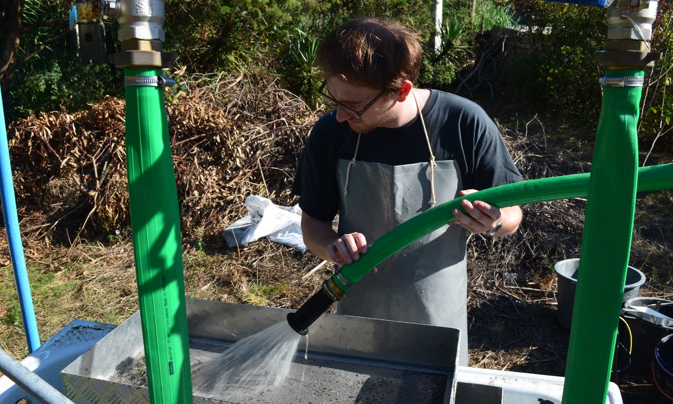 Alexandre Guillaume durante os trabalhos de campo a lavar sedimentos da escavação | Projeto Nabia civiscientrix