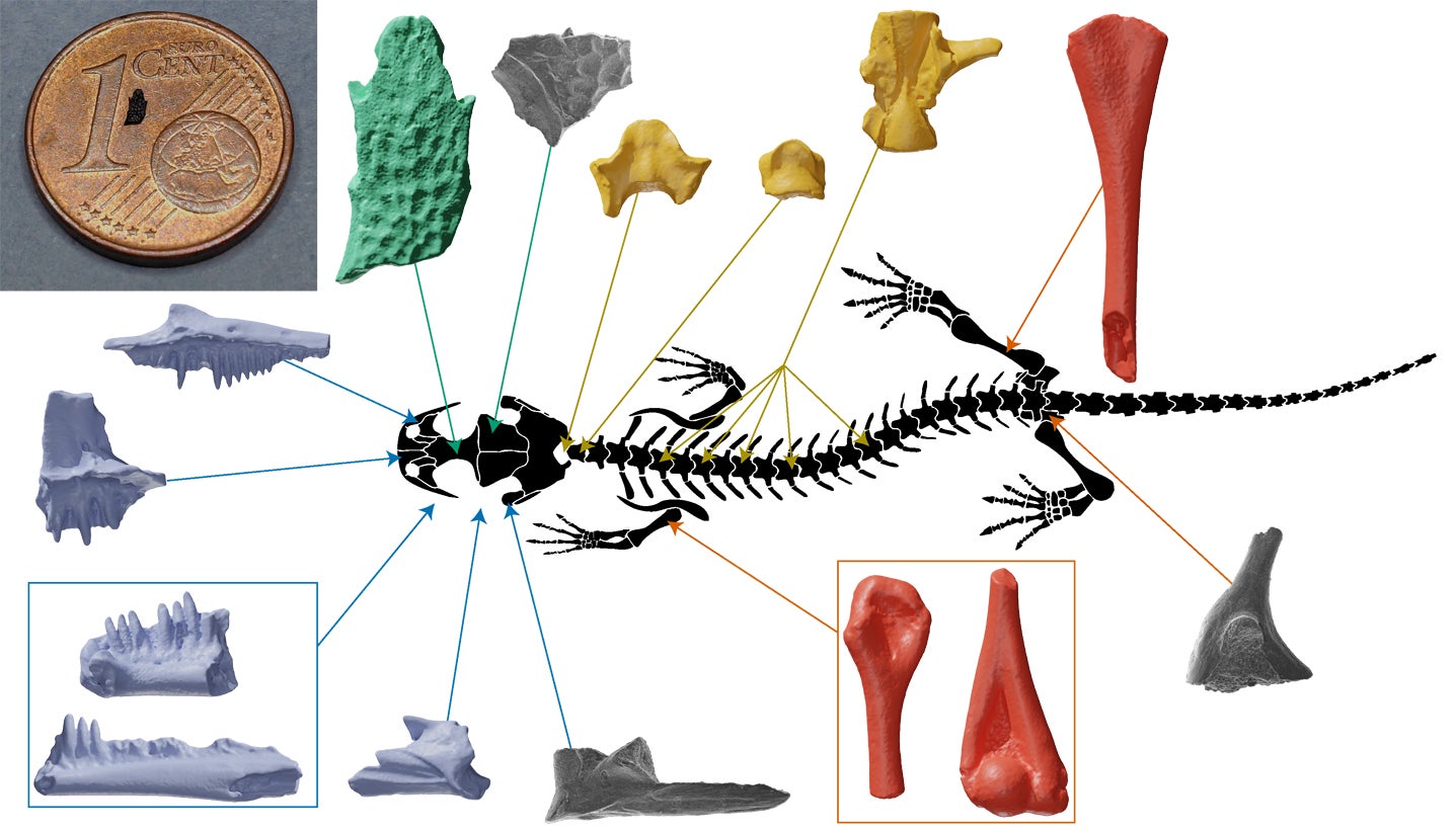 O conjunto de fósseis permitiu reconstruir, pela primeira vez, a anatomia dos albanerpetontídeos, um enigmático grupo de lissanfíbios extintos, parecidos com pequenas salamandras, que coexistiram com os dinossauros há 150 milhões de anos.