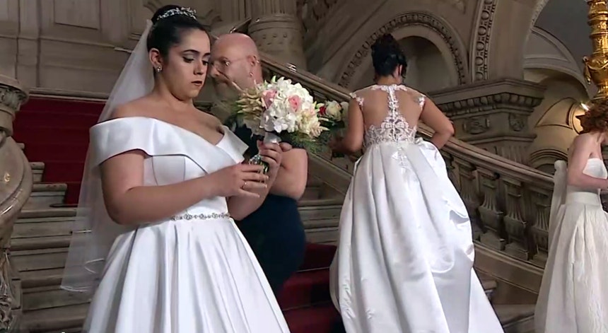 São, como sempre, 16 os casais que celebram o casamento na véspera de Santo António, em Lisboa. Os preparativos começaram bem cedo no edifício da Câmara Municipal, onde as noivas que se casam pelo civil chegaram primeiro.