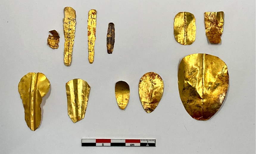 Nesse espaço, foi encontrada uma múmia dentro da câmara que estava coberta por uma delicada camada de ouro, simbolizando proteção divina. O túmulo também abrigava quatro sarcófagos de calcário, acrescentam os especialistas, citados na publicação Archaeology News.