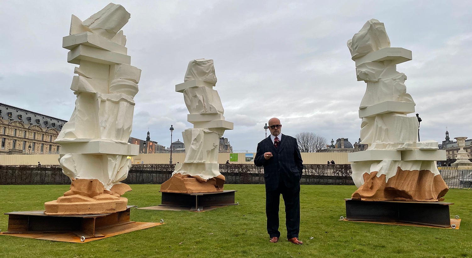 O Museu do Louvre convidou-o, deu-lhe total liberdade e o resultado é uma escultura em cortiça portuguesa, com uma base em aço corten. Foi buscar inspiração a “Les Trois Grâces”, uma obra da antiguidade clássica.