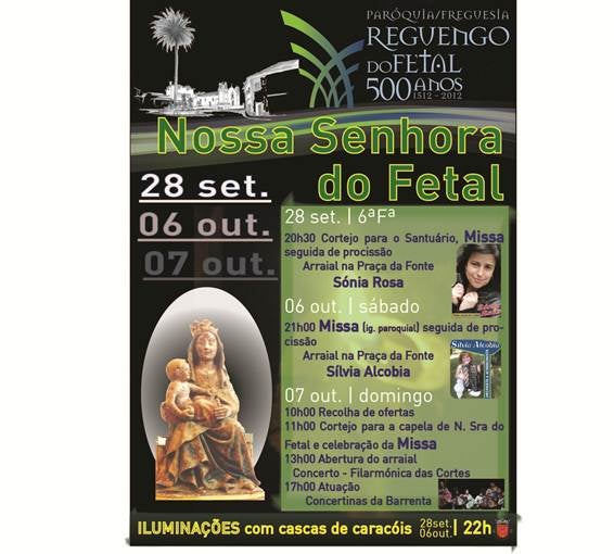 A Paróquia/Freguesia de Reguengo do Fetal comemorou no passado dia 24 de junho 500 anos de existência, o que tem levado à realização de diversos eventos durante o ano, uma data que faz com que este ano de comemorações as Festas em Honra de Nossa Senhora do Fetal tenham maior grandiosidade em termos de realizações artísticas e culturais.