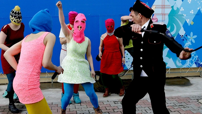 Fundadas em 2011, as Pussy Riot tornaram-se conhecidas um ano depois, quando três dos seus membros foram detidas na sequência de uma atuação contra o presidente da Rússia, Vladimir Putin, numa igreja de Moscovo. Foram acusadas e condenadas a dois anos de cadeia por "vandalismo motivado por ódio religioso".