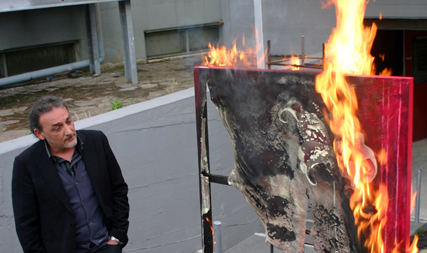 Hoje, igualmente às seis da tarde, será a vez da artista napolitana Rosaria Matarese incendiar uma das suas obras.