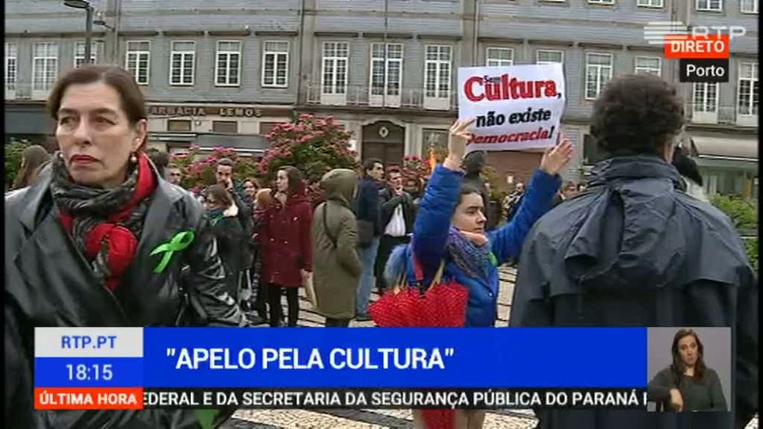 Na Praça Carlos Alberto, na cidade do Porto, juntaram-se várias pessoas para reclamar o valor atribuído pelo governo para a cultura. A reivindicação principal prende-se com o facto de quererem que um por cento do Orçamento do Estado seja dirigido à cultura.