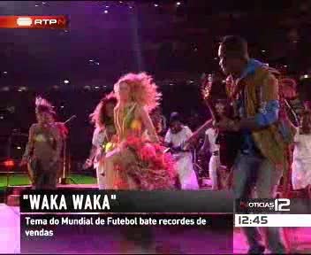 A musica do campeonato do Mundo de Futebol ... Está a bater todos os recordes. O "Waka Waka" interpretado por Shakira nas cerimónias de abertura e de encerramento do Mundial, na África do Sul, vendeu mais de um milhão de cópias, que constitui um novo recorde ao tornar-se no tema que mais rapidamente chegou a este número, na era digital.