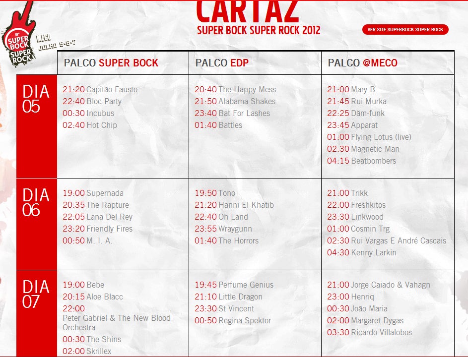 Notas a não esquecer: as portas do recinto abrem todos os dias às 16h e a organização aconselha o público a chegar ao recinto cedo, de maneira a prevenir enchentes e congestionamentos.