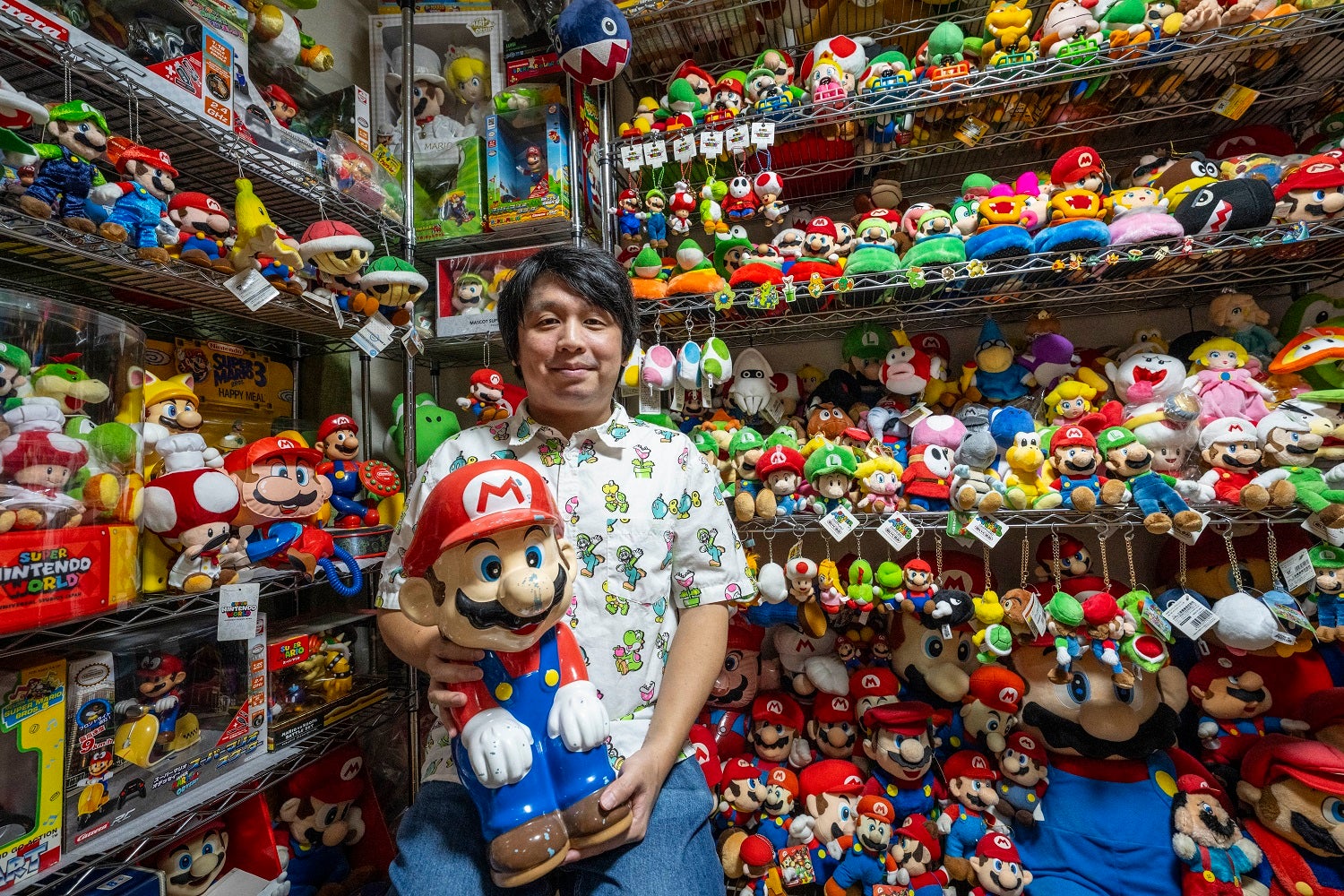 Na casa deste colecionador, o rosto redondo e sorridente do canalizador com bigode, boné vermelho e macacão azul está por toda a parte.